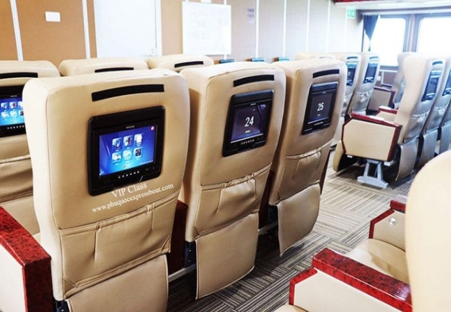 Hãng tàu Phú Quốc Express không chỉ chú trọng vào tốc độ mà còn đặt trải nghiệm khách hàng lên hàng đầu. Các khoang tàu được chia thành các hạng ghế khác nhau, đáp ứng nhu cầu đa dạng từ khách du lịch phổ thông đến các đoàn khách cao cấp. Sự sạch đẹp và tinh tế trong cách bài trí nội thất giúp xua tan cảm giác mệt mỏi, giúp du khách có tinh thần tốt nhất khi đặt chân đến Côn Đảo.