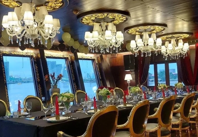 Du thuyền Elisa là lựa chọn lý tưởng cho các doanh nghiệp tổ chức tiệc cuối năm hoặc sự kiện quan trọng. Không gian hoành tráng cùng sức chứa lớn đáp ứng mọi quy mô.