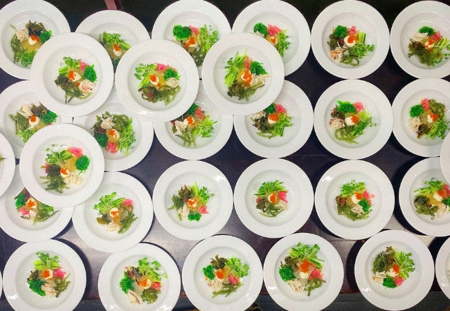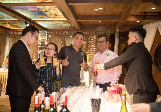 Đội ngũ nhân viên chuyên nghiệp hỗ trợ từ khâu lên kế hoạch đến thực hiện sự kiện. Menu có thể điều chỉnh theo yêu cầu và ngân sách của từng công ty.