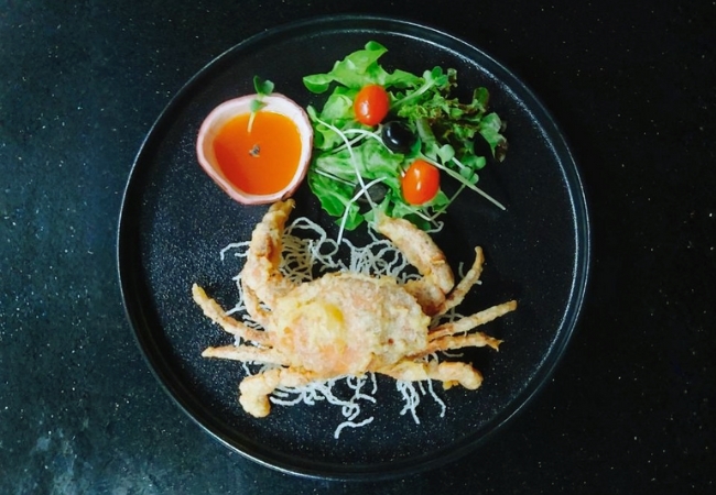 Các món khai vị mang đậm dấu ấn Việt Nam với gỏi hoa chuối sứa biển, gỏi ngó sen tôm thịt giòn tan. Chả giò cua giòn rụm cũng là lựa chọn được nhiều thực khách yêu thích.