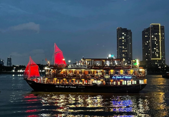 Chuyến đi trên du thuyền Hòn Ngọc Viễn Đông không chỉ là bữa tối thông thường. Đây là hành trình khám phá Sài Gòn từ góc nhìn thơ mộng trên sông nước. Ánh đèn thành phố lấp lánh hòa quyện cùng không gian âm nhạc nhẹ nhàng.