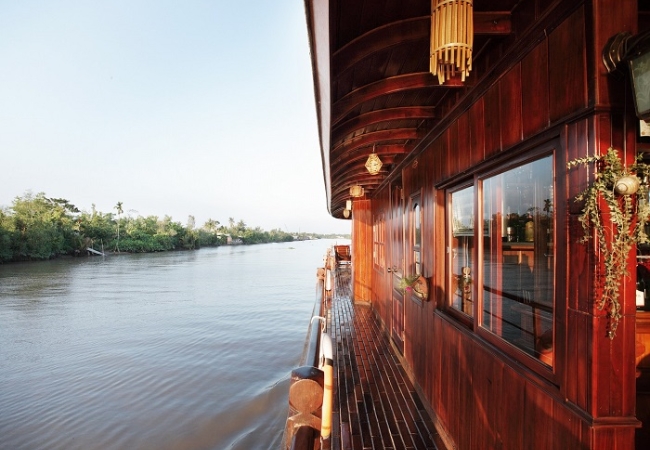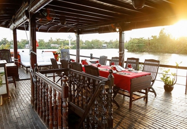 Boong tàu là không gian mở lý tưởng để bạn tắm nắng, tập yoga hoặc đơn giản là ngắm cảnh sông nước. Làn gió mát từ sông thổi qua mang đến cảm giác thư giãn tuyệt vời.