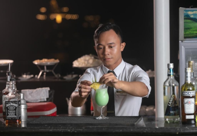 17:30 – 18:30: Tiệc trà chiều với bánh ngọt và trái cây. Đây là khoảnh khắc tuyệt vời để ngắm hoàng hôn rực rỡ từ Sundeck và giao lưu cùng những người bạn mới.
