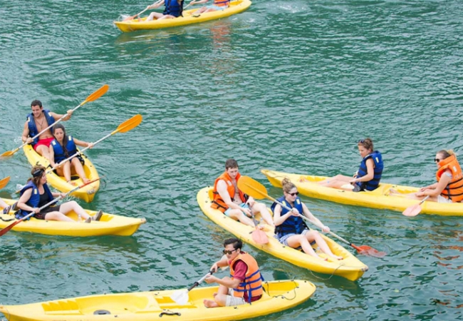 Chèo thuyền kayak là trải nghiệm thú vị cho phép du khách tự do khám phá các vùng nước yên tĩnh giữa những hòn đảo đá vôi. Hoạt động này phù hợp cho mọi lứa tuổi và không yêu cầu kinh nghiệm chuyên môn, vì có hướng dẫn viên đi kèm và đảm bảo an toàn.