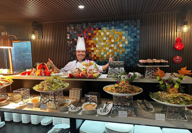 • Thực đơn bữa trưa đẳng cấp chuẩn 5 sao quốc tế với món tôm hùm thượng hạng cùng đa dạng các món ẩm thực Á – Âu.