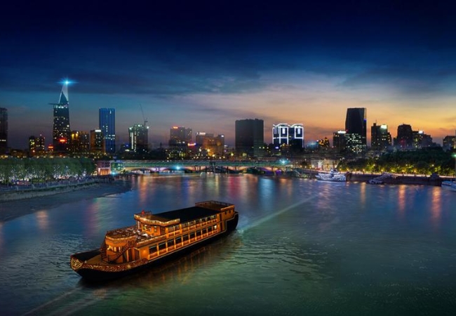 Ngồi trên tàu xuôi theo dòng nước, bạn sẽ chiêm ngưỡng khung cảnh lung linh của Sài Gòn về đêm. Những tòa cao ốc hiện đại với hàng ngàn ánh đèn lấp lánh phản chiếu trên mặt sông tạo nên bức tranh huyền ảo.