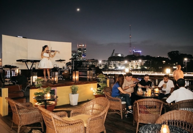 Không khí mát mẻ trên sông vào buổi tối mang lại cảm giác thư giãn tuyệt vời. Làn gió nhẹ nhàng thổi qua, xua tan đi sự oi bức của thành phố, giúp bạn tận hưởng trọn vẹn bữa tối.