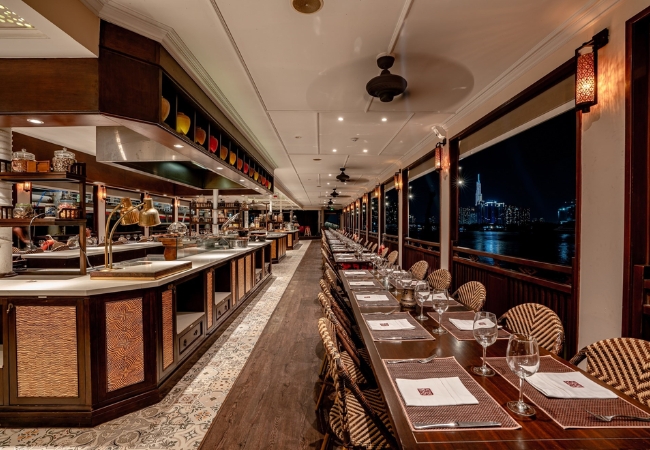 Khi tham gia tour ăn tối trên du thuyền Bonsai, bạn không chỉ thưởng thức ẩm thực mà còn được du ngoạn dọc sông Sài Gòn. Hành trình mang đến góc nhìn hoàn toàn mới về thành phố qua làn nước.