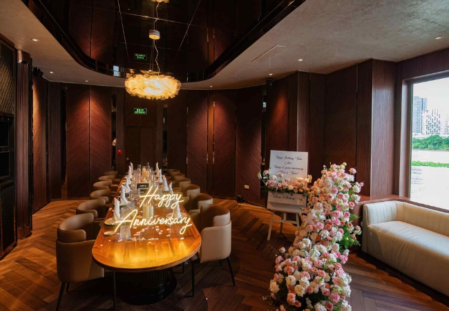 Nhằm đáp ứng nhu cầu gặp gỡ đối tác hoặc tiệc gia đình cần sự kín đáo, tàu bố trí 02 phòng VIP với thiết kế sang trọng: