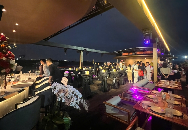 Tầng thượng của tàu là khu vực được nhiều du khách yêu thích nhất với sức chứa khoảng 70 khách và tầm nhìn bao quát toàn cảnh thành phố. Đây là nơi lý tưởng để tổ chức các buổi tiệc cocktail, sinh nhật ngoài trời hoặc đơn giản là ngồi nhâm nhi thức uống tại quầy bar hiện đại. Gió sông lồng lộng cùng ánh đèn lung linh từ các tòa nhà chọc trời tạo nên một khung cảnh cực kỳ “chill” cho những tín đồ yêu thích chụp ảnh.