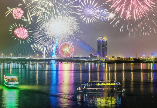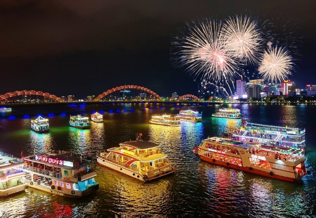 Khi mua vé xem pháo hoa Đà Nẵng trên du thuyền, bạn không chỉ được thưởng thức màn trình diễn ánh sáng mà còn du ngoạn sông Hàn thơ mộng. Du khách sẽ chiêm ngưỡng các cây cầu nổi tiếng như cầu Rồng, cầu Sông Hàn, cầu Trần Thị Lý, cầu Thuận Phước lung linh ánh đèn. Hai điểm check-in mới là cầu Tình Yêu và Cá Chép Hóa Rồng cũng nằm trên tuyến đường di chuyển của tàu.