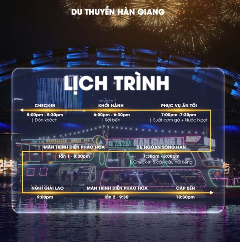 Du thuyền Hàn Giang sẽ dựa trên những thông tin này để xây dựng một lịch trình hoàn hảo, kèm theo bảng giá chi tiết, đảm bảo mang đến cho bạn một trải nghiệm có một không hai tại Đà Nẵng.