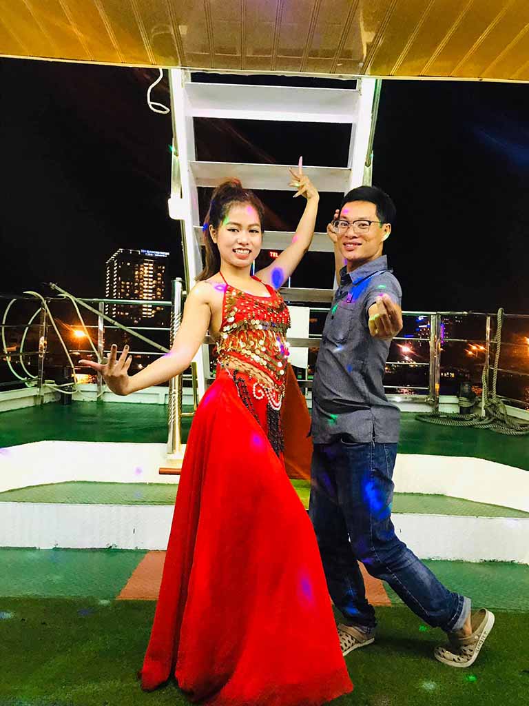 Du thuyền Hàn Giang không chỉ là một phương tiện di chuyển mà còn là một sân khấu nghệ thuật nổi trên mặt nước. Chúng tôi thường xuyên tổ chức các hoạt động giải trí đa dạng, từ những buổi biểu diễn âm nhạc lãng mạn, sôi động đến các màn múa dân tộc đặc sắc, mang đậm bản sắc văn hóa Việt Nam và quốc tế. Bạn cũng có thể thể hiện tài năng ca hát của mình với dịch vụ karaoke, tạo nên những kỷ niệm vui vẻ và ấm áp cùng bạn bè và gia đình. Tất cả những hoạt động này góp phần làm cho chuyến đi thêm phần sống động, không còn nhàm chán, và trở thành một trải nghiệm giải trí trọn vẹn giữa lòng thành phố Đà Nẵng.