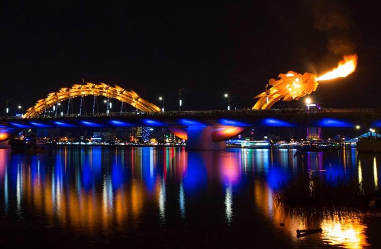 – Cầu Rồng: Biểu tượng của Đà Nẵng, cây cầu với thiết kế hình rồng độc đáo sẽ bừng sáng với hàng ngàn bóng đèn LED đổi màu liên tục, tạo nên một khung cảnh huyền ảo. Đặc biệt vào cuối tuần, bạn còn có cơ hội chứng kiến màn trình diễn phun lửa và phun nước ngoạn mục.