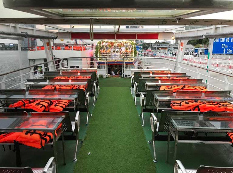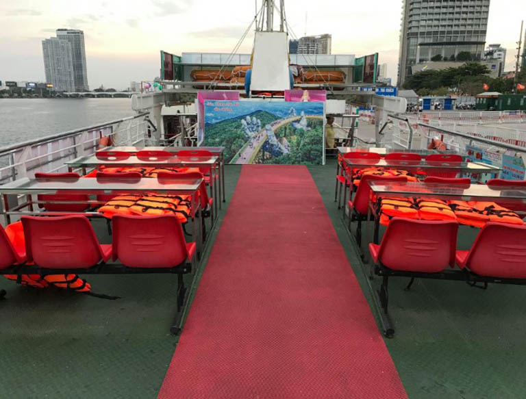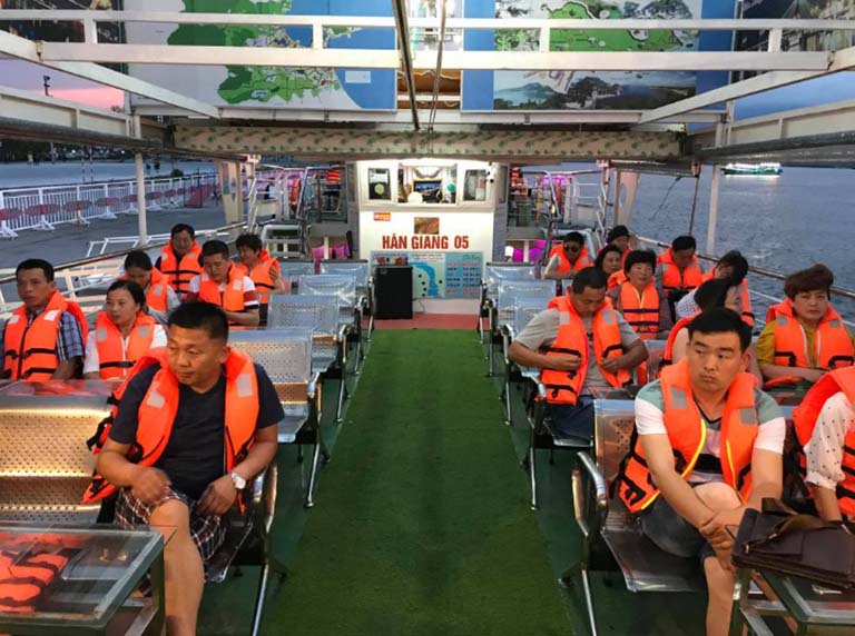Với sức chứa lên đến 96 hành khách, mỗi du thuyền được bố trí ghế ngồi chắc chắn, mang lại không gian thoải mái và riêng tư. Chính nhờ sự kết hợp giữa thiết kế thông minh, tầm nhìn khoáng đạt và sự an toàn tuyệt đối, Du thuyền Hàn Giang đã trở thành lựa chọn hàng đầu, mang lại một hành trình khám phá Đà Nẵng đáng nhớ cho mọi du khách.