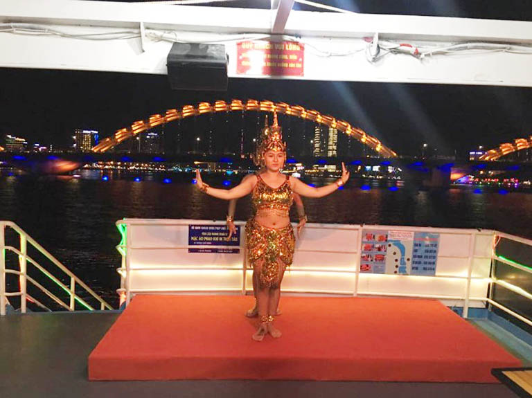 – Cầu Rồng: Cây cầu với kiến trúc độc đáo, tái hiện hình ảnh con rồng đang vươn mình ra biển. Đặc biệt, bạn sẽ được chiêm ngưỡng điệu múa Aspara đầy mê hoặc của người Chăm ngay trên tàu, một trải nghiệm văn hóa độc đáo.