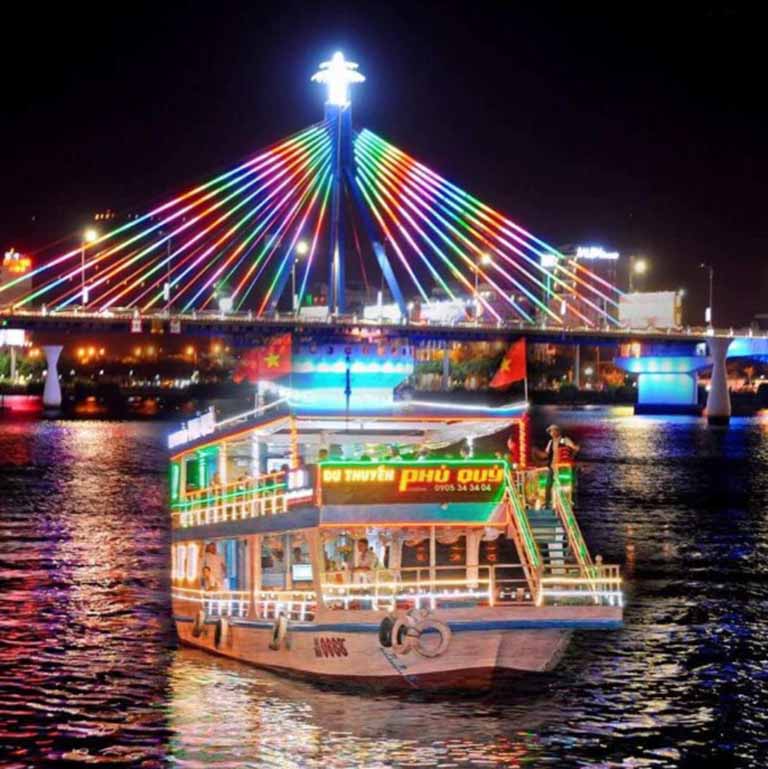 Chuyến du ngoạn sông Hàn cùng du thuyền Phú Quý sẽ đưa bạn vào một hành trình đầy lãng mạn và ấn tượng. Bắt đầu từ bến du thuyền sông Hàn, bạn sẽ được thưởng ngoạn vẻ đẹp lộng lẫy của thành phố khi đêm về, đồng thời khám phá những cây cầu biểu tượng của Đà Nẵng.