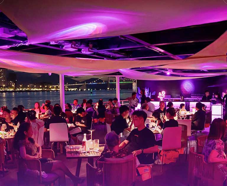 Ngược lại, tầng 2 lại mang một phong cách hoàn toàn khác biệt, sôi động và tràn đầy năng lượng như một quán bar thực thụ. Đây là nơi những tâm hồn yêu âm nhạc và không khí náo nhiệt có thể thỏa sức “chill” cùng bạn bè. Quầy bar hiện đại với đội ngũ bartender chuyên nghiệp luôn sẵn sàng phục vụ những món đồ uống và cocktail đẳng cấp nhất. Chỉ cần nhâm nhi một ly thức uống yêu thích, hít thở làn gió mát rượi và ngắm nhìn cảnh đẹp lung linh của thành phố Đà Nẵng về đêm, bạn sẽ cảm nhận được sự thư thái tuyệt đối.