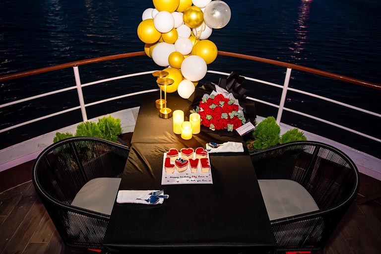 Ngoài ra, Poseidon Cruise còn thể hiện sự tinh tế và chu đáo qua việc hỗ trợ trang trí miễn phí cho các buổi tiệc đặc biệt như sinh nhật hay kỉ niệm. Dù là một buổi tiệc nhỏ hay một sự kiện đáng nhớ, đội ngũ của du thuyền sẽ giúp bạn tạo nên một không gian lãng mạn và hoàn hảo nhất, biến những khoảnh khắc này trở thành kỷ niệm không thể nào quên.