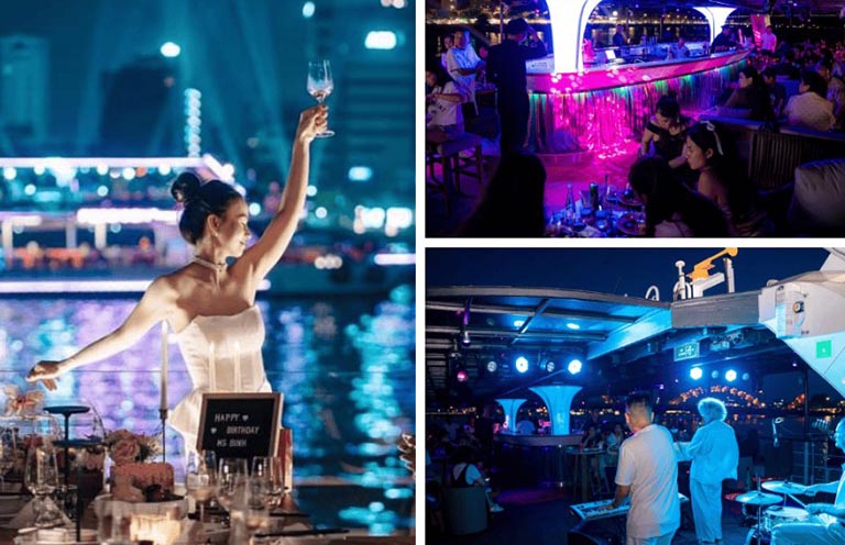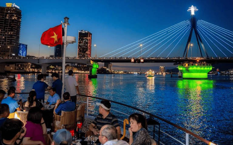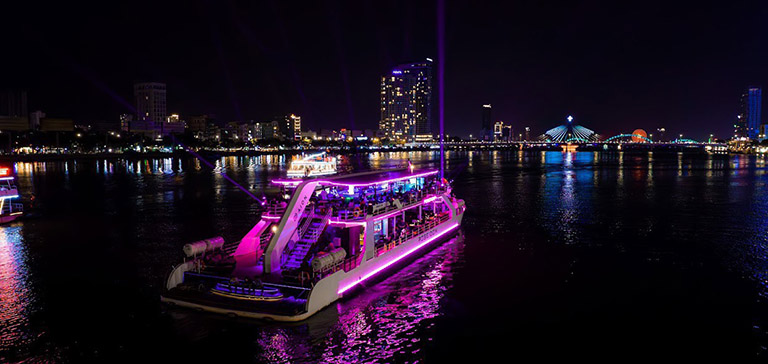 – Giải trí: Thưởng thức các màn biểu diễn nghệ thuật đặc sắc như múa Chăm uyển chuyển, hay sôi động với Live Band/DJ. Đặc biệt, nếu đi vào cuối tuần, bạn sẽ được xem cầu Rồng phun lửa và phun nước trực tiếp từ du thuyền, một trải nghiệm không thể bỏ lỡ.