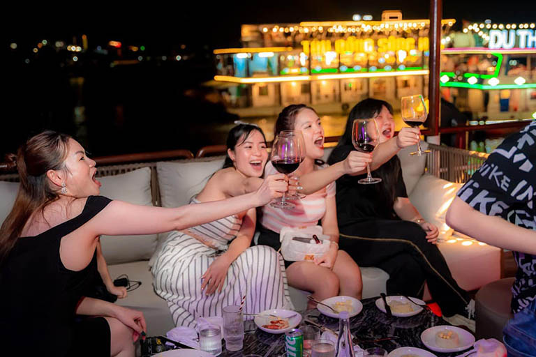 Du thuyền còn là nơi để mọi người xích lại gần nhau. Với chương trình giao lưu văn nghệ và hát karaoke, du khách có thể tự tin thể hiện giọng hát của mình, cùng nhau tạo nên một không khí gần gũi và thân thiện. Đây là cơ hội lý tưởng để bạn làm quen với những người bạn mới, chia sẻ niềm vui và tạo nên những kỷ niệm chung.