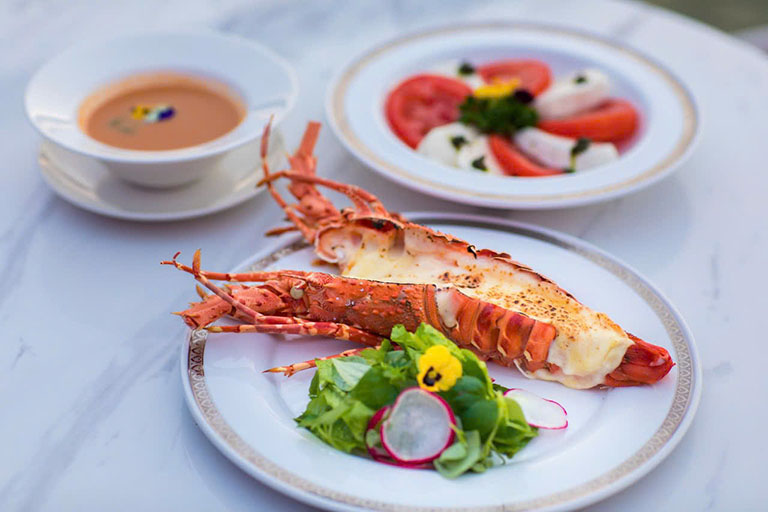 – Khai vị: Mở đầu bằng súp tôm hùm Bisque thơm béo, sau đó là salad cà chua phô mai kiểu Ý tươi ngon, hòa quyện vị béo của mozzarella và sốt quế tây đậm đà.
